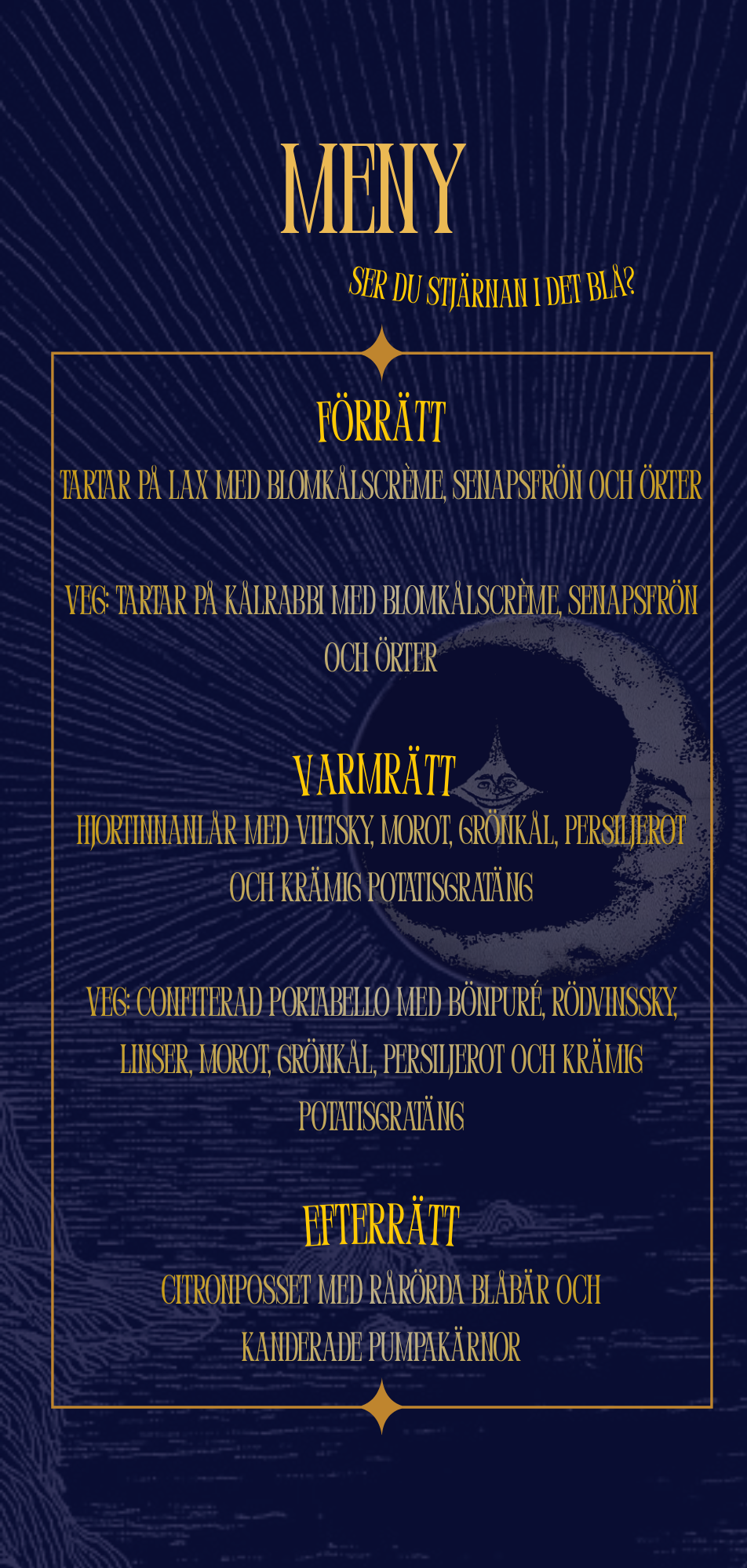 Den 21 mars slår vi därav upp dörrarna till Lilla salen på AF-borgen och välkomnar alla HTS-medlemmar och särskilt anmodade gäster till en magisk kväll med mat, sång och dans. Ser du stjärnan i det blå? Ta en sup så ser du två!